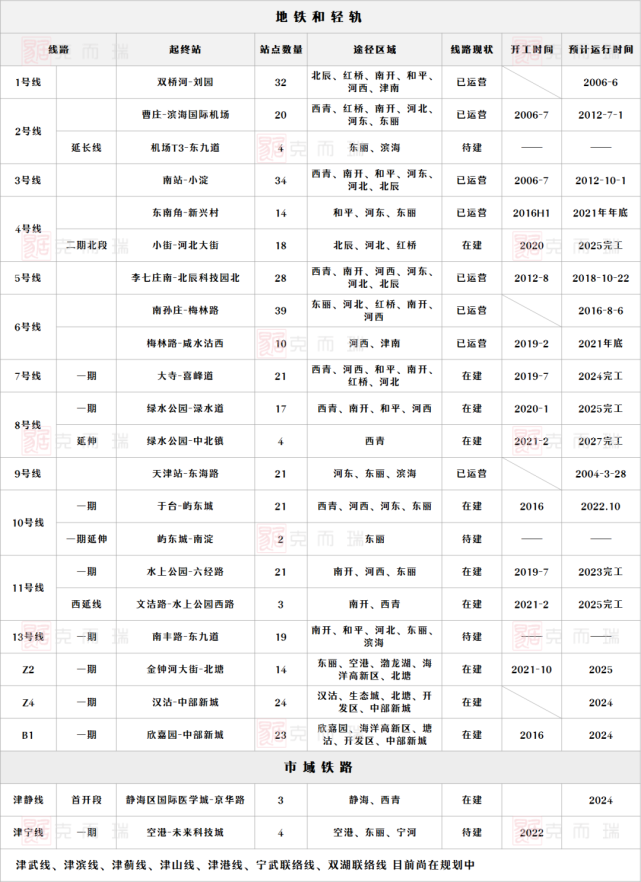 天津地铁信息大汇总!涵盖了多个区域的线路覆盖,位置规划!