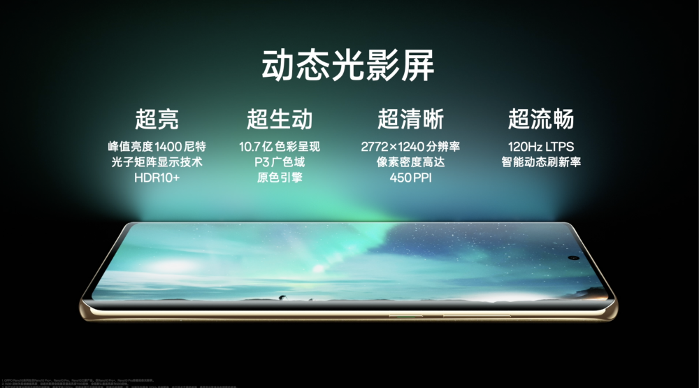在硬件参数上则是1400nit的峰值亮度、2772 x 1240分辨率、120Hz智能动态刷新率等诸多技术,虽说这已经是相对主流的配置,但也确实刷新了Reno系列的屏幕天花板。