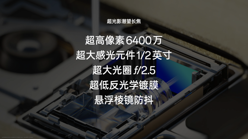 而这颗潜望式长焦镜头的硬件参数也十分不错:6400万像素、1/2英寸超大感光元件、f/2.5超大光圈,搭配全新的镀膜和光路设计系统,让它在光线条件较差的情况下同样能输出不错的照片。